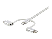 3.3 ft / 1m - Lightning / USB-C / Micro-USB - Braided - MFi Certified - USB 2.0 - 3 in 1 Charging (LTCUB1MGR) - USB-kabel - USB (hann) til Micro-USB type B, Lightning, 24 pin USB-C (hann) - 1 m - sølv