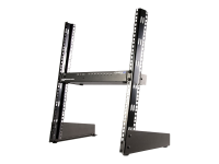 Mount smaller rack mountable devices right at your desk with this lightweight 12U 2 post desktop rack. The RK12OD 12U 19in Desktop Open Frame 2 Post Rack provides the perfect mounting option for smaller Audio/Video and IT equipment where space is limited and a full sized cabinet is not required. This TAA compliant product adheres to the requirements of the US Federal Trade Agreements Act (TAA), allowing government GSA Schedule purchases. The 12U rack features a compact and lightweight free-standing design that is suitable for installation on or around your desk giving you easy access to the mounted equipment in your workspace. This lightweight 2 post rack is engineered to meet EIA rack mount standards and includes a pack of 20 M5 screws and Cage Nuts, allowing you to mount up to five devices into the rack right away.