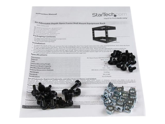 12" Deep 2 Post Open Frame Server Room Rack for Data/AV/IT/Computer Equipment/Patch Panel with Cage Nuts & Screws 135lb Capacity, Black (RK812WALLO) - Rack - svart - 8U - 19" - for P/N: CABCAGENUTS6, CABSCREWM52, CABSCREWSM6, CABSCRWM520, CABSCRWM620, CABSCRWS1224