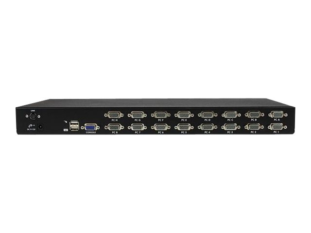 This 16 Port USB KVM Switch offers a dependable computer management tool that allows you to control up to 16 USB connected computers from one keyboard, mouse and monitor. The KVM switch offers maximum control, allowing you to switch computers using hotkey commands or front panel push-buttons, and offers the added configurability and convenience of an On Screen Display. A suitable addition to server room operations, the 16 port switch can be rackmounted into 1U of cabinet space, and can be cascaded with multiple KVM switches to deliver control of up to 136 computers from this single switch.