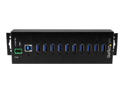 StarTech.com 10 Port USB Hub with Power Adapter, Surge Protection, Metal Industrial USB 3.0 Data Transfer Hub, Din Rail, Wall or Desk Mountable, High Speed USB 3.1/ USB 3.2 Gen 1 5Gbps Hub